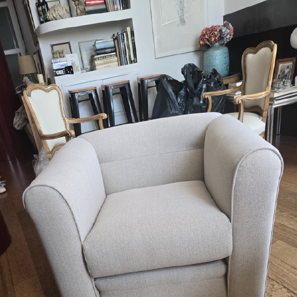 Sillones orejeros, butacas clásicas o modernas. Restauramos y reforzamos la estructura si es necesario, con rellenos y telas de primera calidad.